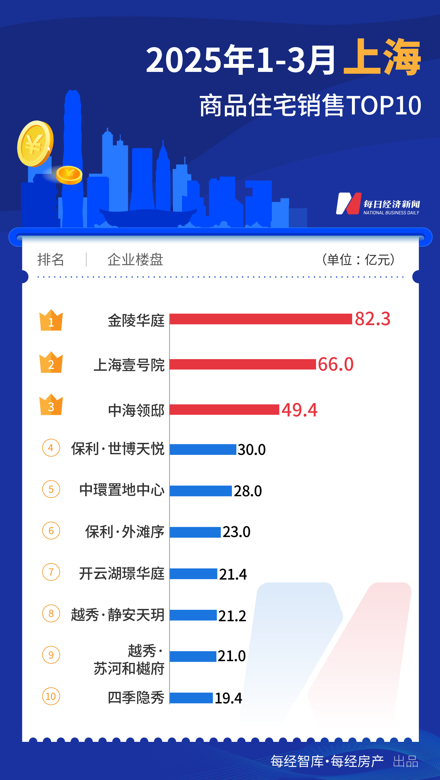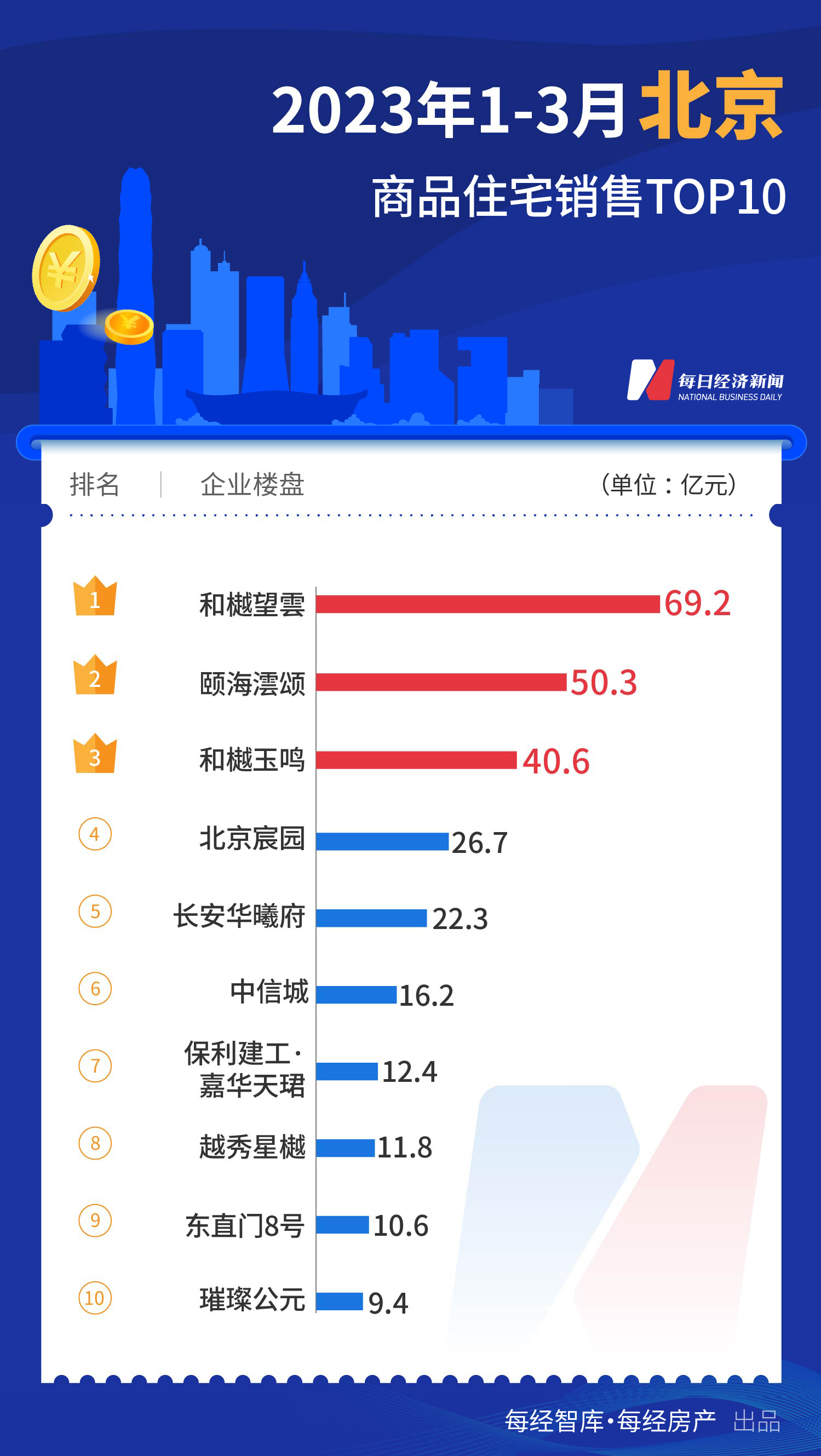 值得一提的是,一季度全国销售冠军项目为上海的金陵华庭,销售额高达82.3亿元;北京的和樾望雲项目以69.24亿元位居第二,上海的壹号院项目以66亿元排在第三位。